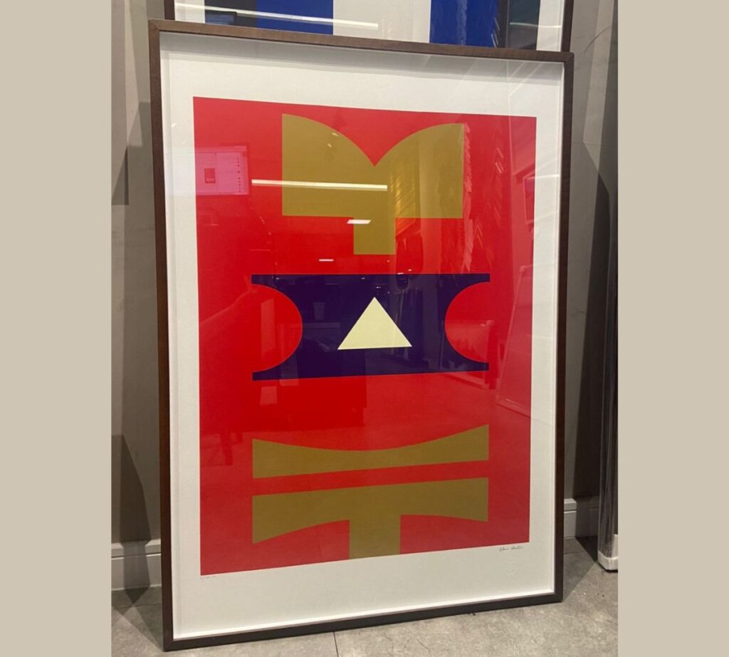 Rubem Valentim traz uma explosão de cores vibrantes com este quadro decorativo. Utilizando tons de vermelho, mostarda e azul, a obra apresenta formas geométricas características do artista. A moldura branca contrasta perfeitamente, destacando ainda mais as cores e a complexidade da pintura. Uma peça ideal para colecionadores de arte moderna e abstrata.
